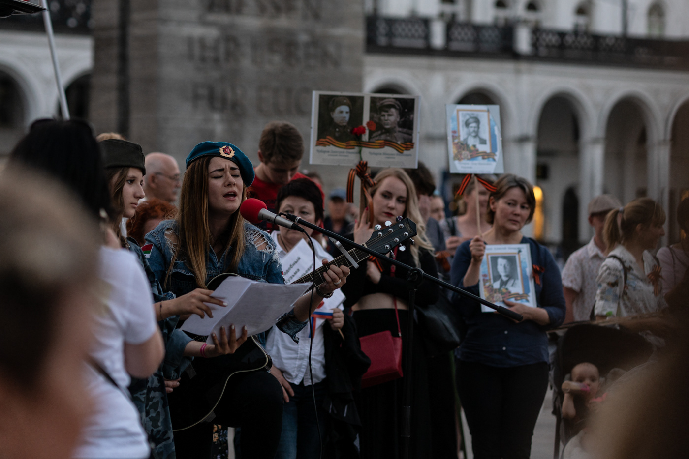 Singing girl on Victory Day on May 9th. Hamburg, Germany. Near Hamburg City Hall. Sony A7R II + Sony 85mm f1.4. 2018